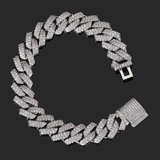 14Mm Full Diamond Cuban Bracelet for Women Silver Plated Iced Out CZ Cuban Link Bracelet Fine Jewelry